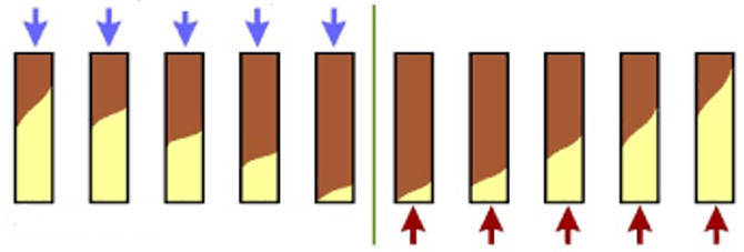 Beim Beladen wird im oberen Bereich als erstes Zum Beispiel Kupfer gespeichert, bei den CKR-Ionen werden dann Magnesium, Kalzium etc. nach unten gedrückt.