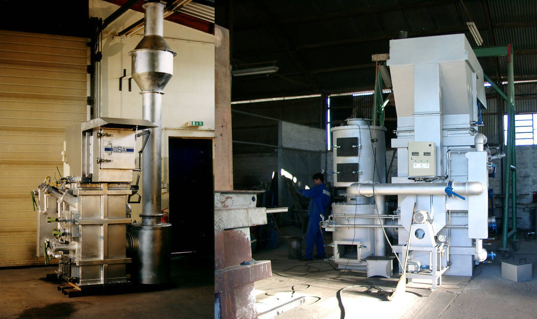 in einer zweiten Kammer wird noch einmal das Gas verbrannt und total Endstaubt.
