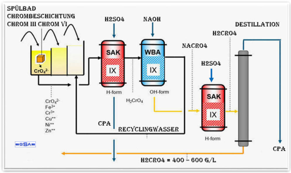 Beispiel eines Verfahren um in der Galvanik Kupfer oder Nickel zu Recyceln, dabei wird gleichfalls Schwefelsäure Recycelt und